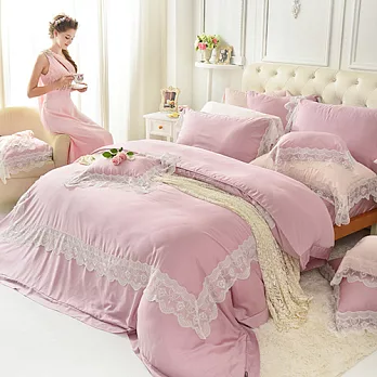 義大利La Belle《愛琴維納斯》雙人天絲蕾絲四件式防蹣抗菌舖棉兩用被床包組無粉膚