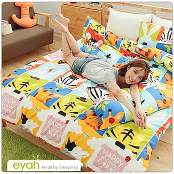 【eyah】頂級極細柔絲綿雙人床包被套4件組-拼貼動物園