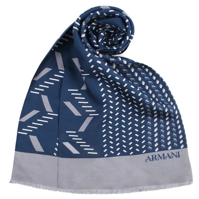 【ARMANI COLLEZIONI】幾何圖案短流蘇管狀蠶絲薄圍巾(湛藍色)